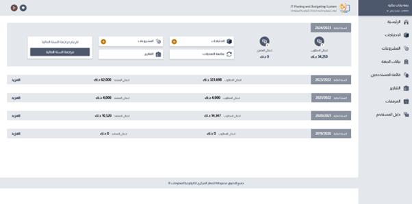 - يختص تسجيل ومتابعة وظائف بيانات الجهة بكل من مسؤول تكنولوجيا المعلومات وضابط النظام بالجهة، بينما يسمح لمسئول المراجعة ومسؤول الأعداد بعرض هذه البيانات فقط.